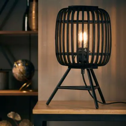 Brilliant Tafellamp Houtrow Metaal Bamboe Zwart Hout | Geschikt voor 1x E27