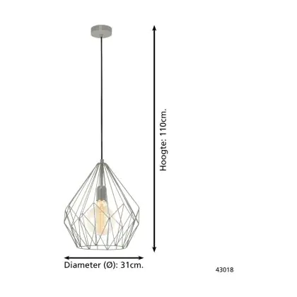 Beschrijving Eglo Hanglamp Carlton Staal Grijs | IP20 - Geschikt voor 1x E27