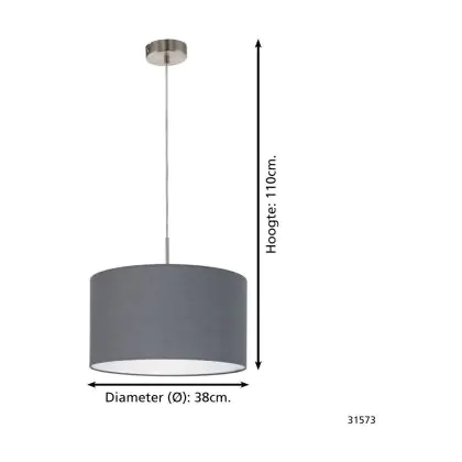 Beschrijving Eglo Hanglamp Pasteri Staal Satijn Nikkel | IP20 - Geschikt voor 1x E27