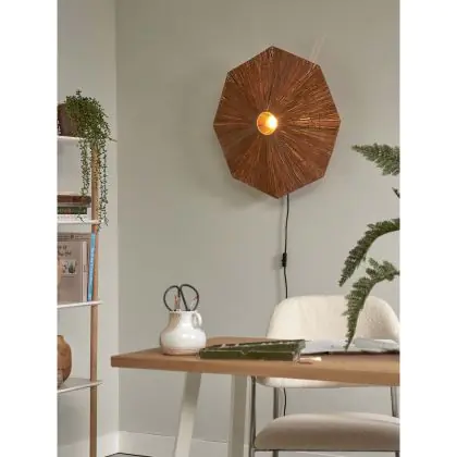 Beschrijving Good&Mojo Wandlamp Panama Raffia Bruin | Geschikt voor 1x E27