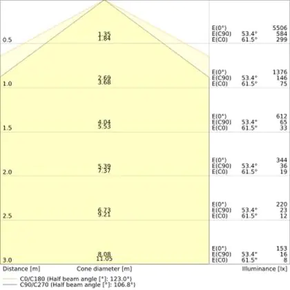 De lichtopbrengst (Lumen), geeft weer hoe krachtig het uitgestraalde licht is. Dit is belangrijk om te weten om de juiste sfeer te creëren. 0 tot 400 Lumen is bij uitstek geschikt voor accent- of sfeerverlichting. Een hoger aantal Lumen is, afhankelijk van de grootte van de ruimte, beter geschikt als ondersteunende- of basisverlichting. Heb je plafonds hoger dan 4 meter, dan is een lichtopbrengst van minimaal 8000lm aan te raden indien heldere verliching gewenst is (vb. in werkomgevingen).