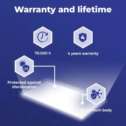 Met de aanschaf van dit LED paneel van 120x60cm maak je in meerdere opzichten een goede keuze. Met een gemiddelde levensduur van 70000 uur ben je verzekerd van een duurzaam product, dat vele jaren optimaal blijft presteren. Bovendien draag je een steentje bij aan een schoner milieu, want LED verlichting vermindert de C02 uitstoot en bevat geen giftige stoffen zoals kwik.