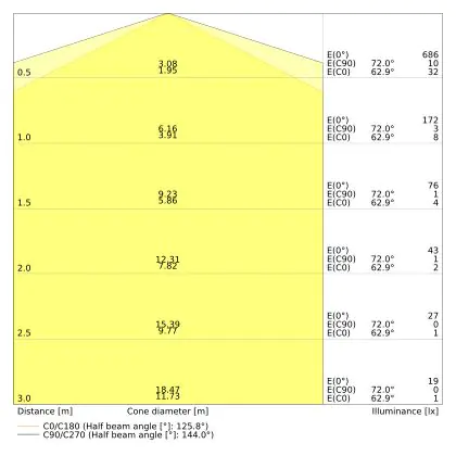 De lichtopbrengst (Lumen), geeft weer hoe krachtig het uitgestraalde licht is. Dit is belangrijk om te weten om de juiste sfeer te creëren. 0 tot 400 Lumen is bij uitstek geschikt voor accent- of sfeerverlichting. Een hoger aantal Lumen is, afhankelijk van de grootte van de ruimte, beter geschikt als ondersteunende- of basisverlichting. Heb je plafonds hoger dan 4 meter, dan is een lichtopbrengst van minimaal 8000lm aan te raden indien heldere verliching gewenst is (vb. in werkomgevingen).