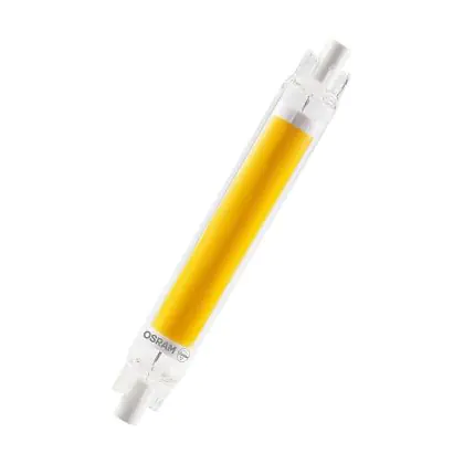 Deze R7s LED lamp is de efficiënte en energiezuinige LED-vervanger van R7s halogeenlampen. Wat opvalt aan deze buisvormige LED verlichting is de lampvoet aan beide uiteinden. Hiermee klik je de lamp vast in een geschikt armatuur. R7s LED staaflampen beschikken over een brede stralingshoek (gradenbundel), waardoor het licht meerdere kanten op schijnt. Dat is onder andere ideaal voor bouwplaatsen, sportvelden of (hoge) wand- en plafondarmaturen. R7s LED lampen met een extra warm witte kleurtemperatuur (2700K) kom je ook tegen in design armaturen voor woonkamers en slaapkamers. De kleurtemperatuur van deze LED lamp is: .